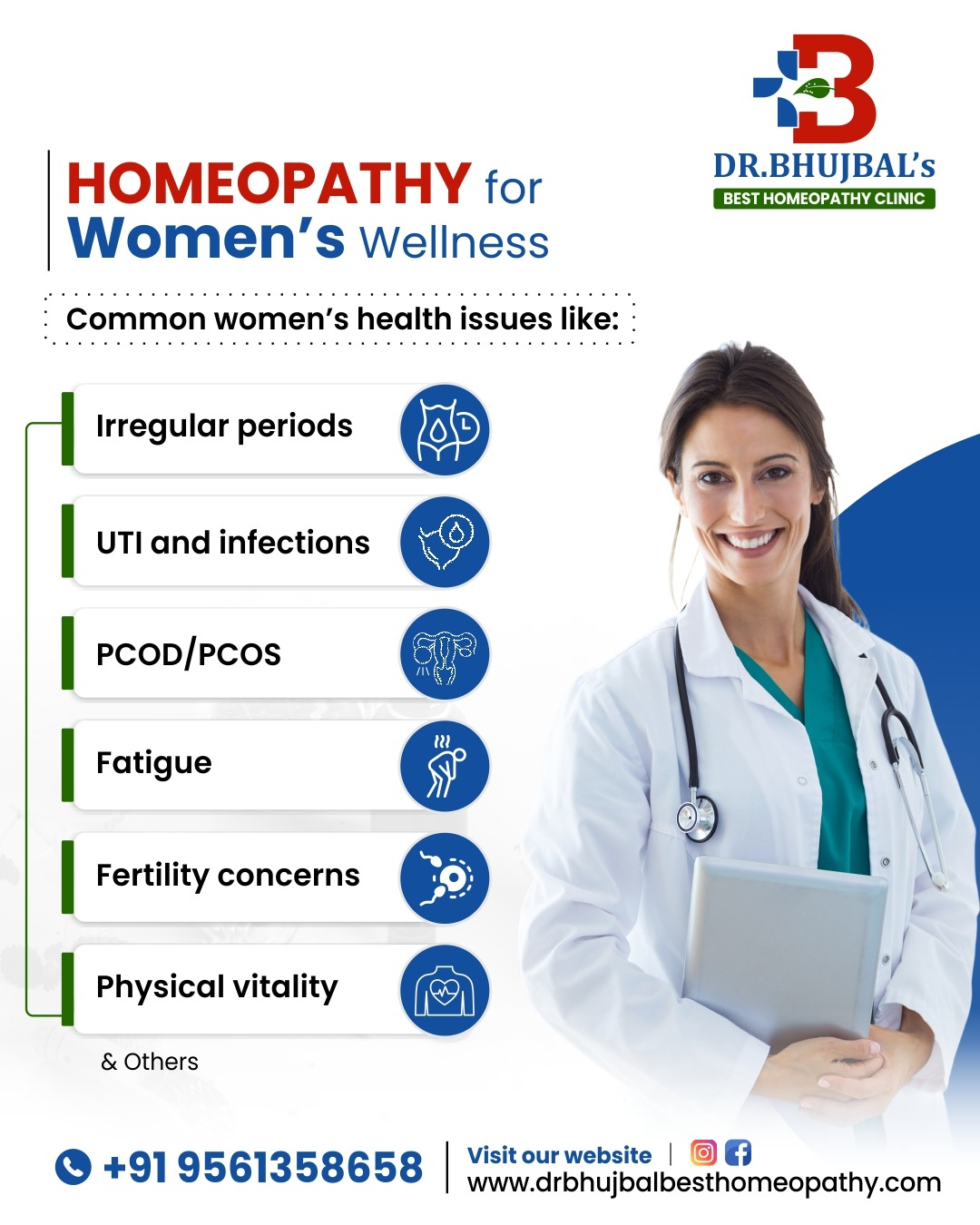 🌸 Homeopathy for Women’s Wellness 🌸 Women’s health is often overlooked, but issues like irregular periods, PCOD, PCOS, UTIs, fatigue, and fertility concerns can impact daily life. Don’t ignore these signs—homeopathy offers a gentle and effective solution! At Dr. Bhujbal’s Best Homeopathy Clinic in Kharadi, Pune, we provide personalized treatments to support hormonal balance, reproductive health, and overall vitality—naturally and safely. ✅ Regulates Menstrual Cycles ✅ Manages PCOS, PCOD Symptoms ✅ Treats UTI & Infections Naturally ✅ Boosts Energy & Physical Vitality ✅ Supports Fertility & Well-being 📍 Visit us in Kharadi, Pune 📞 Book Online Consultation - +91 9561358658 🌐 Learn more: www.drbhujbalbesthomeopathy.com #WomensHealth #HomeopathyForWomen #DrBhujbalHomeopathy #besthomeopathyclinic #PCOSCare #UTITreatment #HormonalBalance #FertilitySupport #NaturalHealing #HealthyWomen #KharadiPune